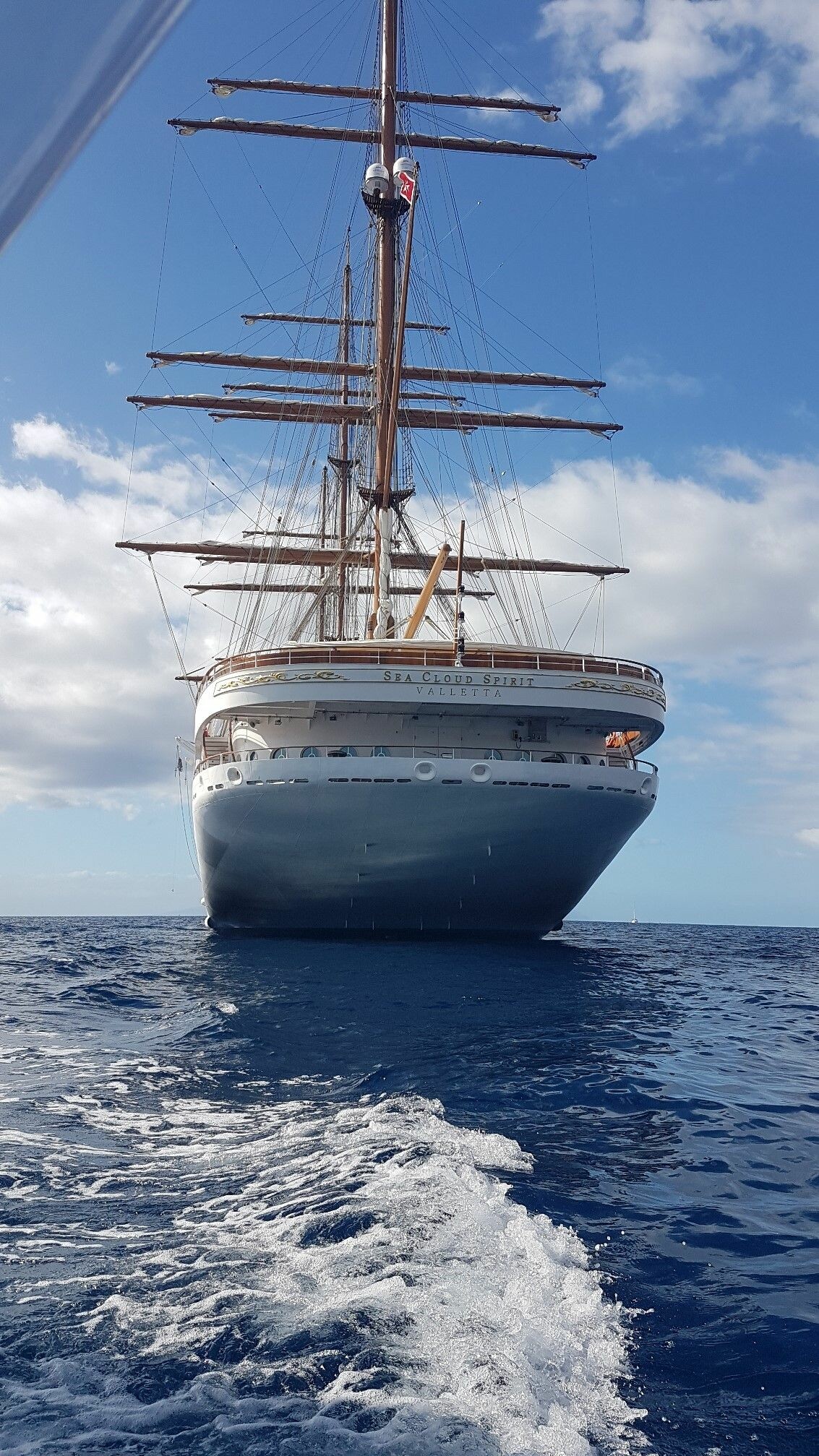 Ich hatte das sagenhafte Erlebnis auf dem Dreimast Vollschiff der Hamburger Reederei Sea Cloud Cruises auf der erst im Herbst in Dienst gestellten Sea Cloud Spirit. Wir segelten im Archipel der Kanaren und um uns tummelten sich Grindwale, Delfine etc... Unbeschreiblich schoen. Ein Hoechstmass an segeltechnischer Ausstattung lässt keine Wünsche übrig, alles ist vom Feinsten. Und die grosszuegigen Kabinen, manche, wer moechte, sogar mit eigenem Balkon, haben nicht nur noble Ausstattung bis zu goldenen Wasserhaehnen, feinstes Mobiliarl etc, nein auch der persönliche Service ist sehr einzigartig und herzlich. Wir waren ca. 85 Gäste, die Crew war genauso groß. Ein super Verhältnis in jeder Hinsicht. Und der Gaumengenuss fuer Genießer kam nie zu kurz.