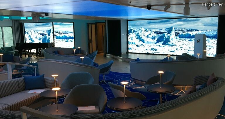 17 Zodiacs warten darauf, den Gästen ganz intensive Erlebnisse zu ermöglichen. Lektoren stimmen mit viel Fachwissen auf die nächsten Abenteuer ein, vermitteln viel Wissen über Flora, Fauna und alles was in den nächsten Tagen hautnah entdeckt werden kann. In der Ocean Academy an Bord erleben Sie Wissenschaft ganz individuell und interaktiv. In drei Restaurants werden die Gäste kulinarisch verwöhnt, je nach Lust und Laune bei einem 5-Gänge Menü, im Spezialitäten-Restaurant oder im Lido Restaurant mit Außenbereich unter freiem Himmel. Auf dem Observation Deck oder in der Oberservation Lounge haben Sie beste Aussichten und fest installierte Ferngläser. Wenn Sie Natur hautnah erleben möchten, bietet der neue Decksumlauf auf dem Vorderschiff Naturbeobachtungen aus erster Reihe. Auf dem Sonnendeck sind zwei ausfahrbare gläserne Balkone installiert, für das atemberaubende Gefühl 18 Meter über dem Meer zu schweben.