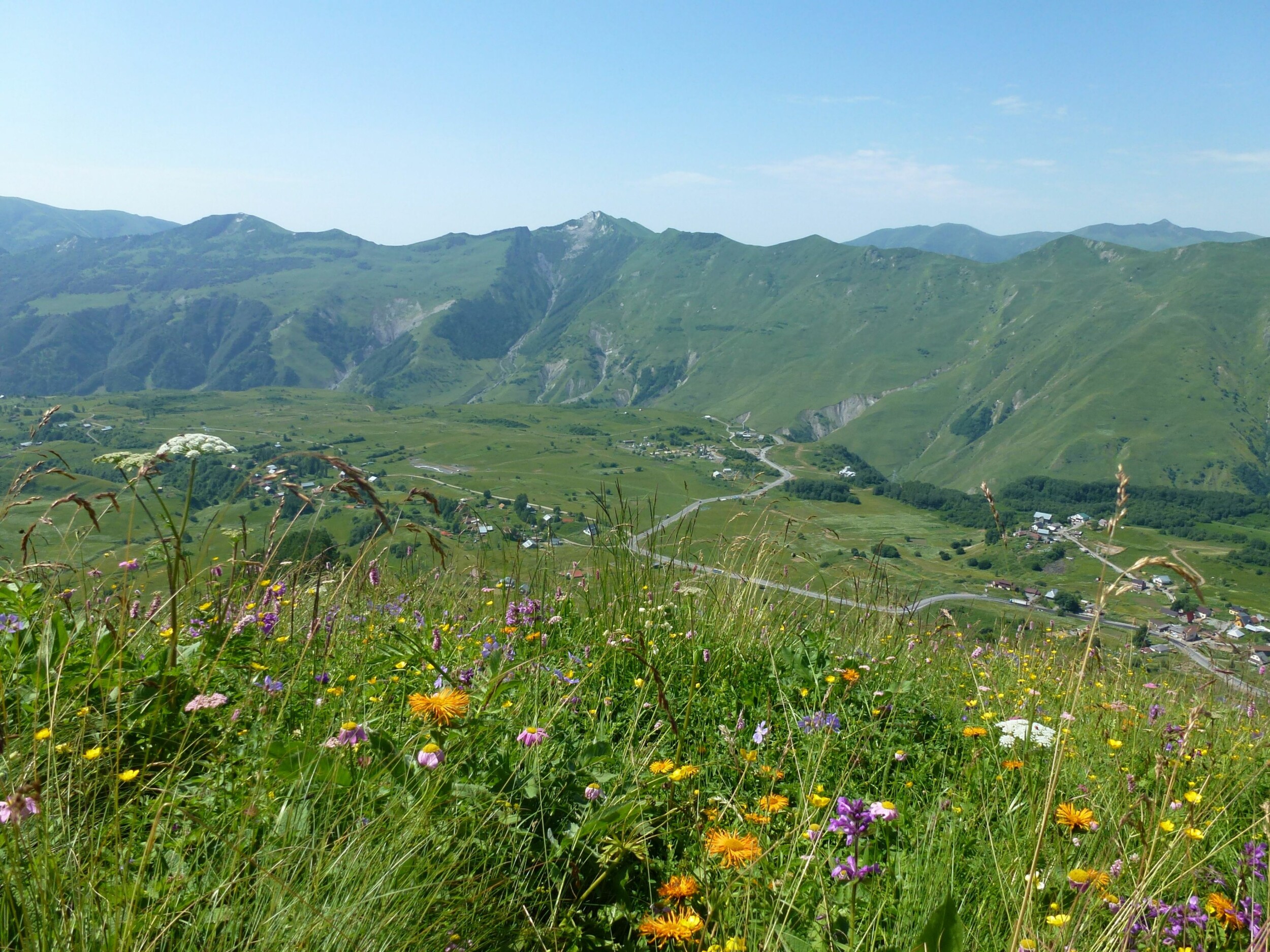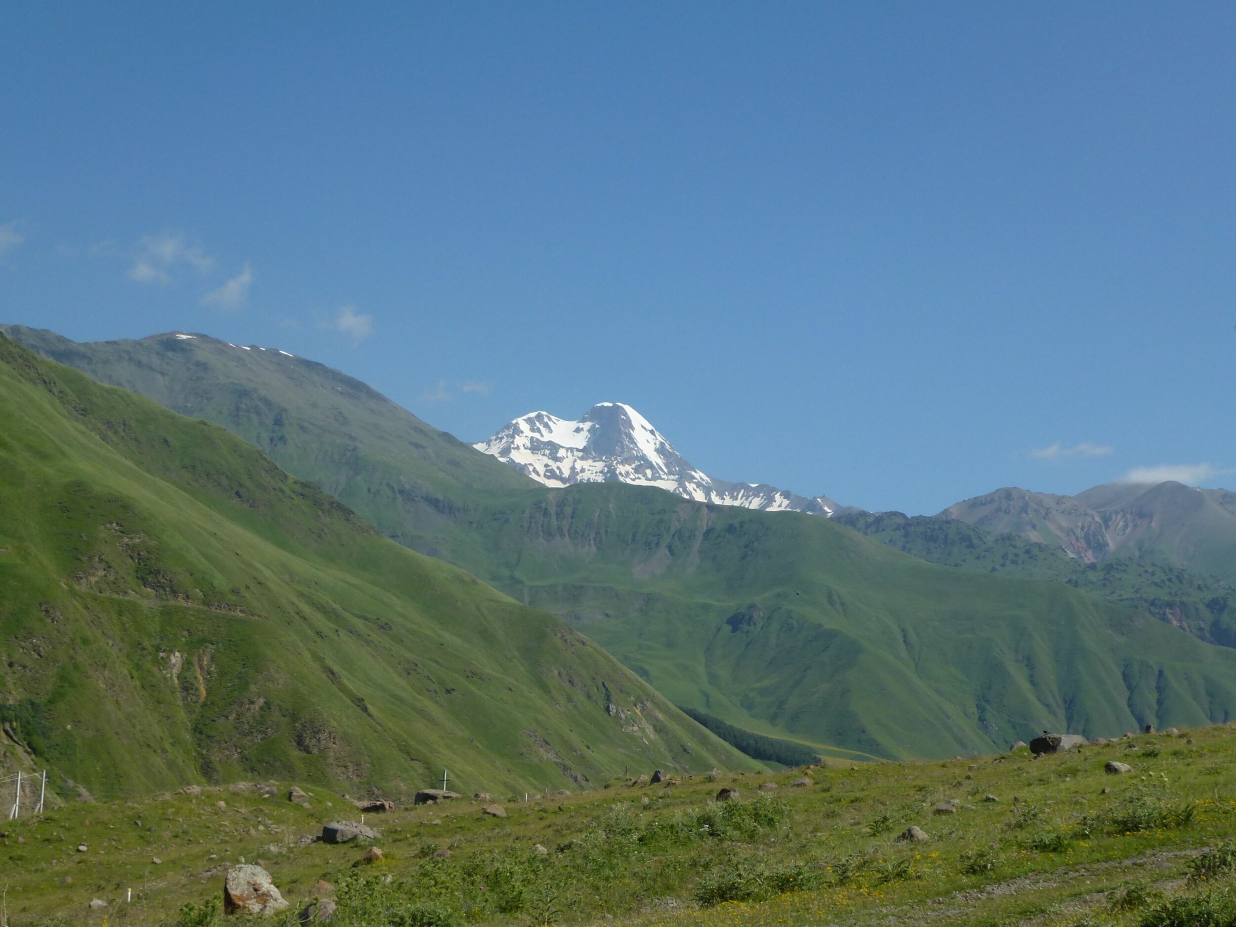 Von Tiflis aus geht es in den außergewöhnlichen Kaukasus seine Bergwelt mit vielen Bergen über 5000 m ist beeindruckend. Schon die Fahrt dorthin lässt einen nicht mehr aus dem Staunen. Unterwegs ziehen einsame Bergdörfer, Bergseen und Pässe an einem vorüber und dann ist er da der Blick zum Kasek.