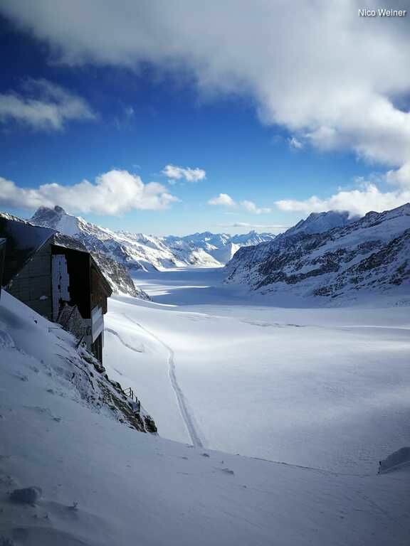 Am Gipfel angekommen wird man förmlich überwältigt. Dort wartet eine einzigartige Aussicht auf den benachbarten Mönch, das ferne Interlaken bis hin zum 22 kilometerlangen Aletschgletscher, der seit 2001 zum Weltnaturerbe der UNESCO zählt. Es gibt einen Stempelautomat, bei dem man sich stolz eine Art Jungfrau-Reisepass abstempeln lassen kann. Wer behaupten möchte in über 3000 Meter Höhe die günstigste Lindt-Schokolade in der Schweiz gegessen zuhaben, ist im Lindt-Store genau richtig. Nach einem Besuch im „Crystal“, dem Schweizer Restaurant, geht es dann mit tollen Erinnerungen wieder ins Tal. Während der Abwärtsfahrt hat man nochmal die Möglichkeit die einzigartige Landschaft zu genießen.