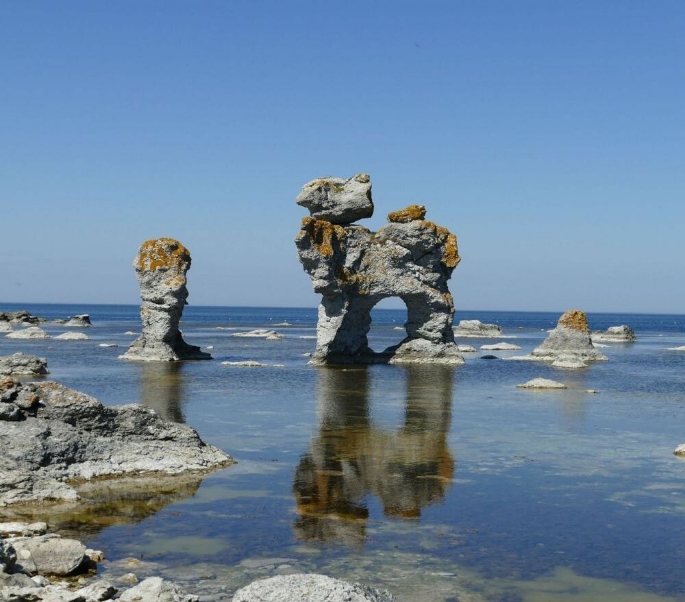 Gotland Schwedens größte Inseln bietet alles was Schweden so hat in Kleinformat zu bieten hat wussten Sie das hier in Visby die Pipi Langstrupf Filme in den kleinen Gassen der mittelalterlichen Stadt gedreht wurden? Beeindruckende Steinformationen die Rauken sind zu besichtigen und die angenehmen Temperaturen auf Gotland laden zum Baden ein.